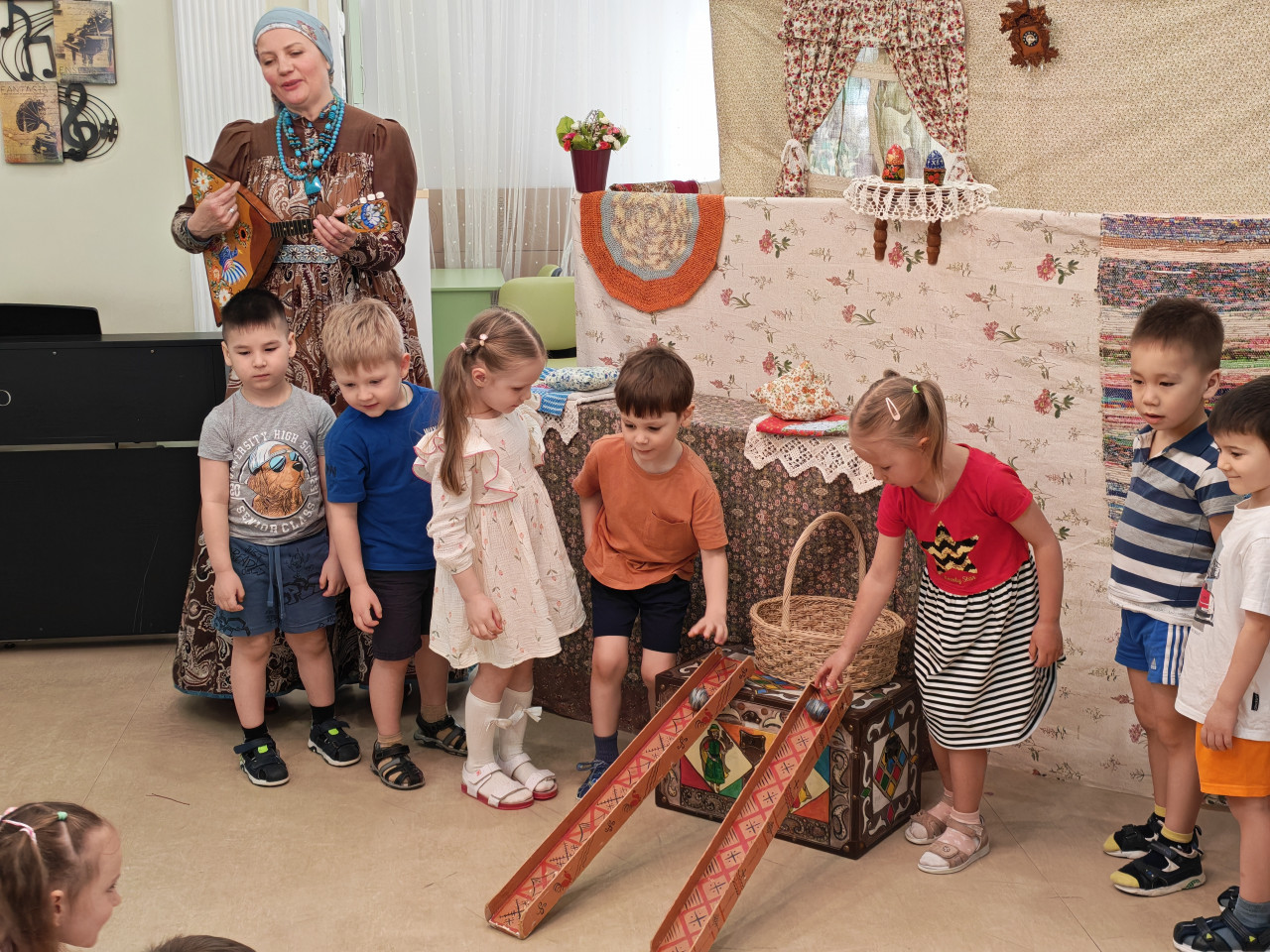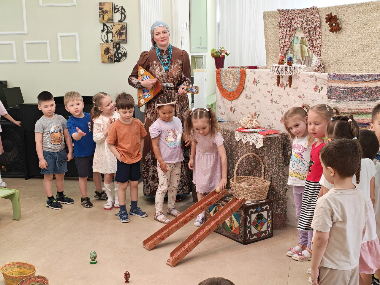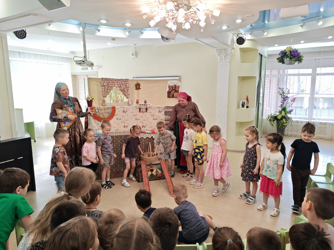 В простой и понятной форме спектакль рассказал детям о традициях встречи и празднования Пасхи. После представления для ребят провели игровую программу с традиционными пасхальными забавами и катанием деревянных яиц по лоточкам.
