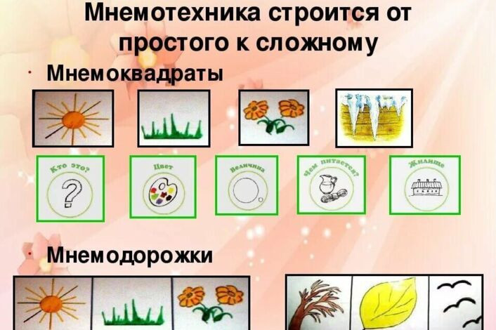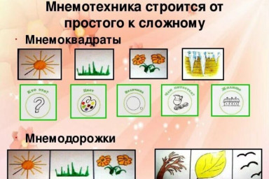 Приёмы мнемотехники облегчают процесс запоминания у детей и увеличивают объём памяти путём образования дополнительных ассоциаций.