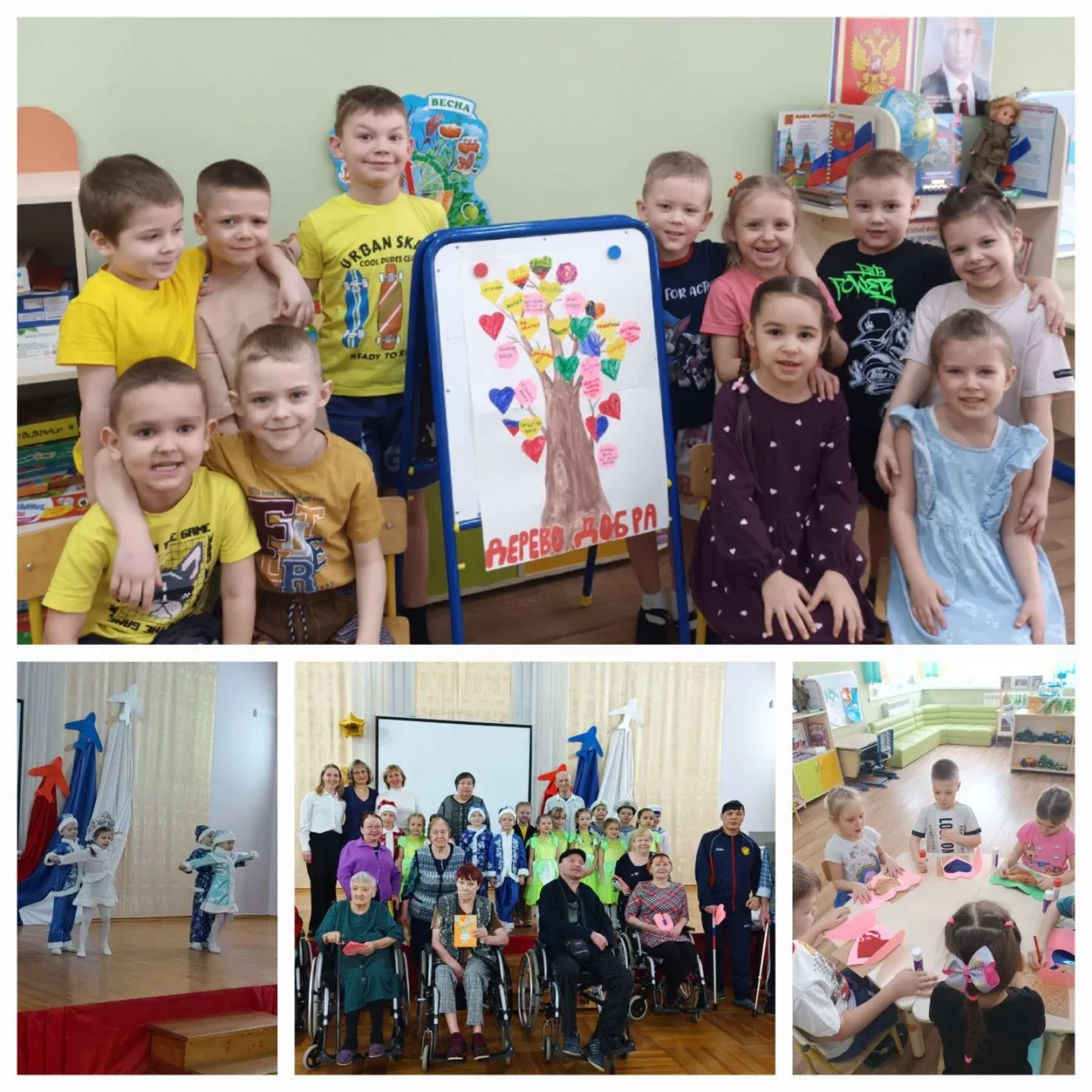 Эта неделя посвящена была доброте. Мы с детьми разговаривали о том, что такое ДОБРОТА? кого можно назвать добрым человеком? как стать добрым человеком? Ребята старались сделать как можно больше добрых дел и дома и в детском саду. А ещё в среду 26 февраля наши юные волонтёры группы «Лучики добра» с родителями и педагогами посетили Ново — Ленинский дом — интернат для престарелых и инвалидов с благотворительным концертом. Наши ребята вместе с музыкальным руководителем Юлией Владимировной, хореографом Еленой Николаевной, логопедом Ириной Сергеевной подготовили программу концерта: зажигательные танцы, весёлые песни и замечательные стихи, а ещё дети своими руками сделали для бабушек и дедушек памятные открытки с добрыми пожеланиями. Очень приятно было видеть счастливые и радостные лица пожилых людей на концерте.