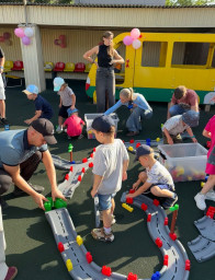 Особым моментом праздника стал мастер-класс для родителей и детей. Все вместе, вооружившись пальчиковыми красками, создавали яркие рисунки. Этот творческий процесс сблизил взрослых и детей, позволив им проявить свою фантазию и креативность. Затем, вооружившись ложками, участники устроили настоящий оркестр, исполняя веселые мелодии, заражающие всех вокруг своим позитивом. Строительство башен и городов из конструкторов стало еще одним увлекательным занятием, в котором родители и дети с удовольствием принимали участие.